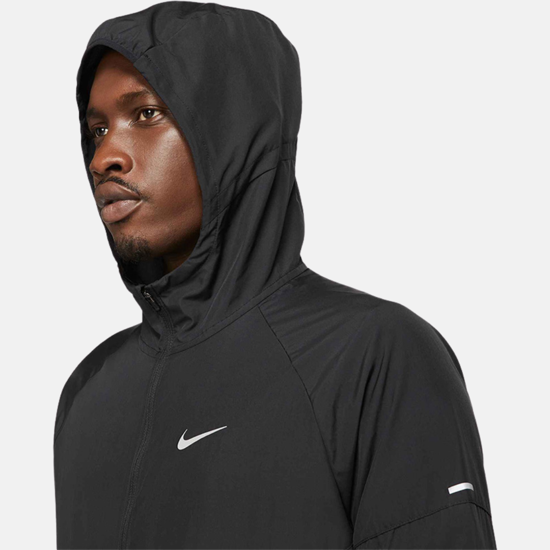 Brave the elements and keep your running goals on track with the Nike Repel Miler Men's Running Jacket. Designed to tackle wet weather, this lightweight essential features water-repellent woven fabric and an adjustable hood to shield you from wind and rain. Iconic Windrunner-inspired Chevron design lines add a timeless Nike touch, while internal bungee cords allow you to personalise the fit for maximum comfort as you push through the miles. Whether you're facing a drizzle or a downpour, this jacket has you covered.