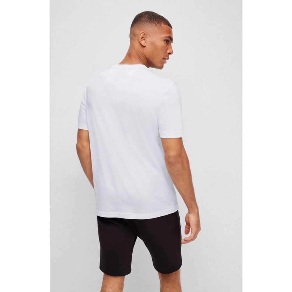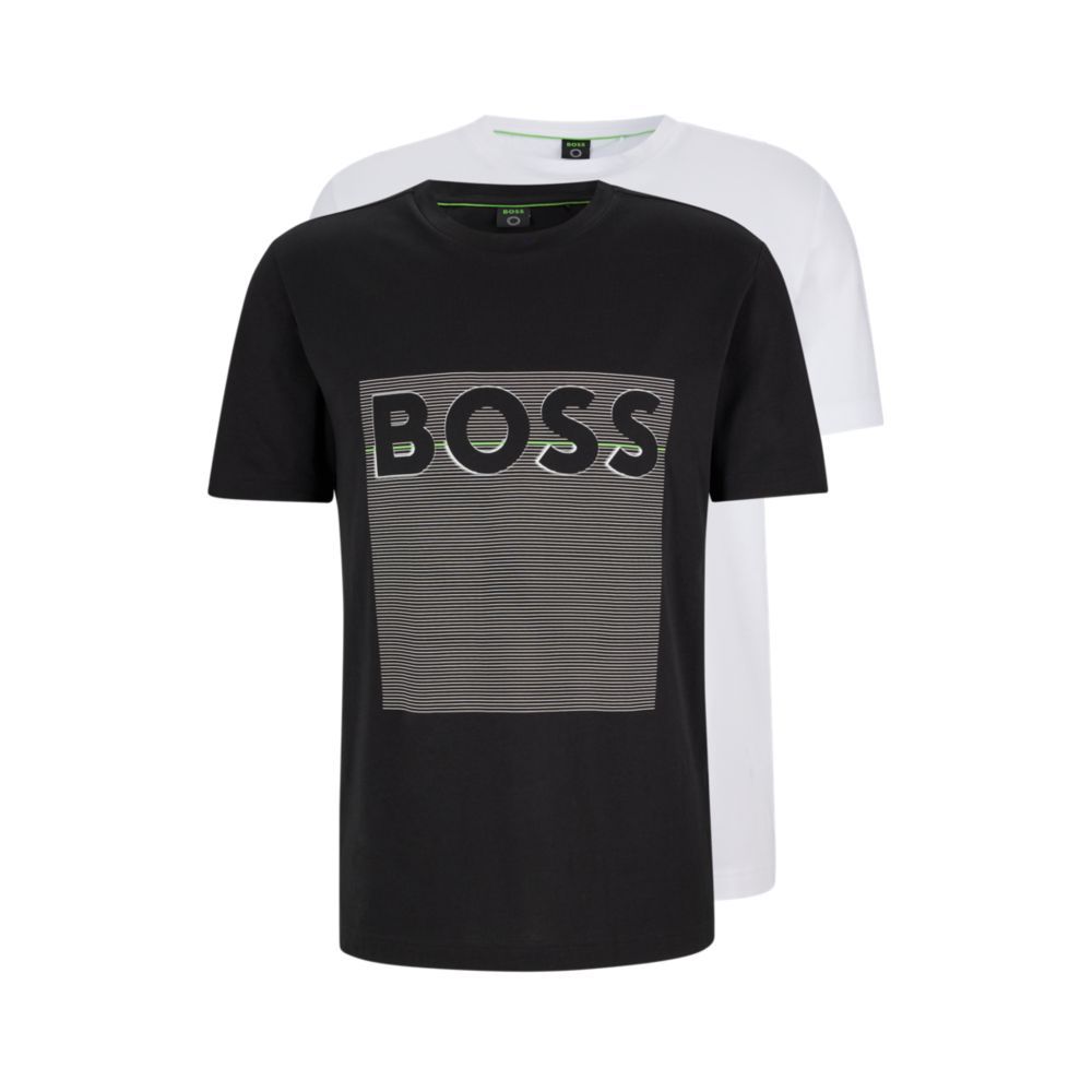 A duo of short-sleeved T-shirts by BOSS Menswear. Cut to a straight fit for casual appeal, these T-shirts are designed in super-soft jersey and detailed with BOSS logo artwork at the chest. For our RESPONSIBLE products, we always use at least 60% more sustainable raw materials. By purchasing this product, you are contributing to protecting the environment and sustainable cotton farming in Africa. Cotton made in Africa is an initiative of the Aid by Trade Foundation. The cotton produced is 100% rain fed, so no extra water is needed. Smallholder farmers are supported by this initiative that is working to promote gender equality, dignified labor conditions, and respect for the rights of children. There is no use of genetically modified organisms, and participants are trained in climate-friendly agricultural methods and organic farming.
